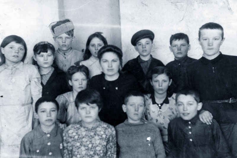 Ученики Грузенской 7-летней школы с учителем немецкого языка Леонтиной
