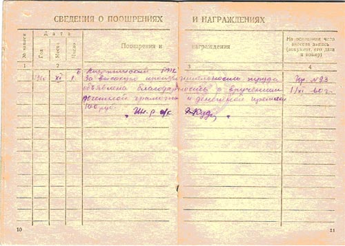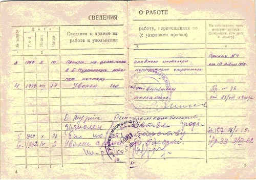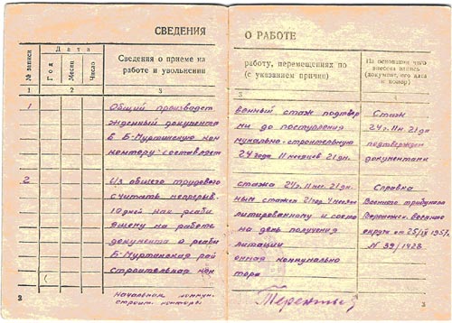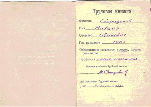 Право на трудовую книжку М.И.Спиридонов получил только после реабилитации.