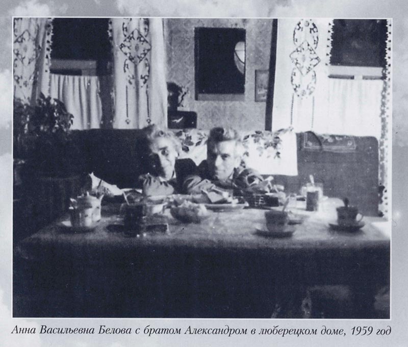 Так завершился жизненный путь моей мамы – Анны Васильевны Беловой. Ей шел 86-й год. На третий день после кончины состоялись похороны – кремация в Николо-Архангельском крематории. Ее провожало много людей. Много пришло и на поминки на Кронштадтский бульвар, где она прожила чуть больше года. «Кронштадтский период» ее жизни оказался очень коротким. Урну с ее прахом захоронили на старом Люберецком кладбище, в могилу, где покоились ее родители Александра Алексеевна и Василий Никитич Галкины, а с 1974 года и младший брат Александр Васильевич.