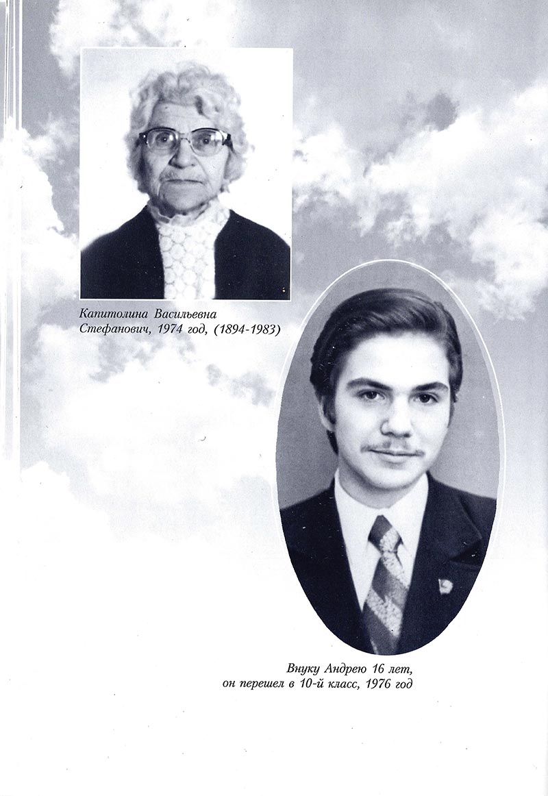 За пять с половиной лет, прожитых еще «этой красивой бабушкой, произошло немало важных для нее и для меня событий, порадовавших нас. Окончил Университет Андрей, женился, переехал в Кронштадтского бульвара в дом, к своей жене Ирочке, и в 1982 году они подарили мне внука, а тете Капе правнука Артема. В том же году из Иркутска в Москву перевели работать Тонечку – Антонину Александровну Андриевскую, которая пожила какое-то время у нас с Капочкой, пока не переехал с вещами и мебелью из Сибири и не отделал полученную в Мытищах квартиру супруг Станислав. Для тети Капы это было радостное событие – Тоню и Стасика она нежно любила. Радостными были для нее и мои «производственные успехи», и мои кратковременные командировки, и тот факт, что работа приносит мне удовольствие.
