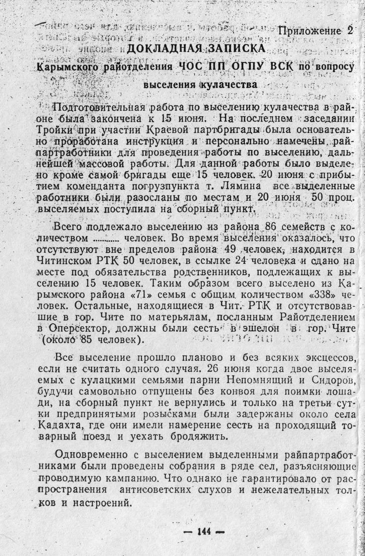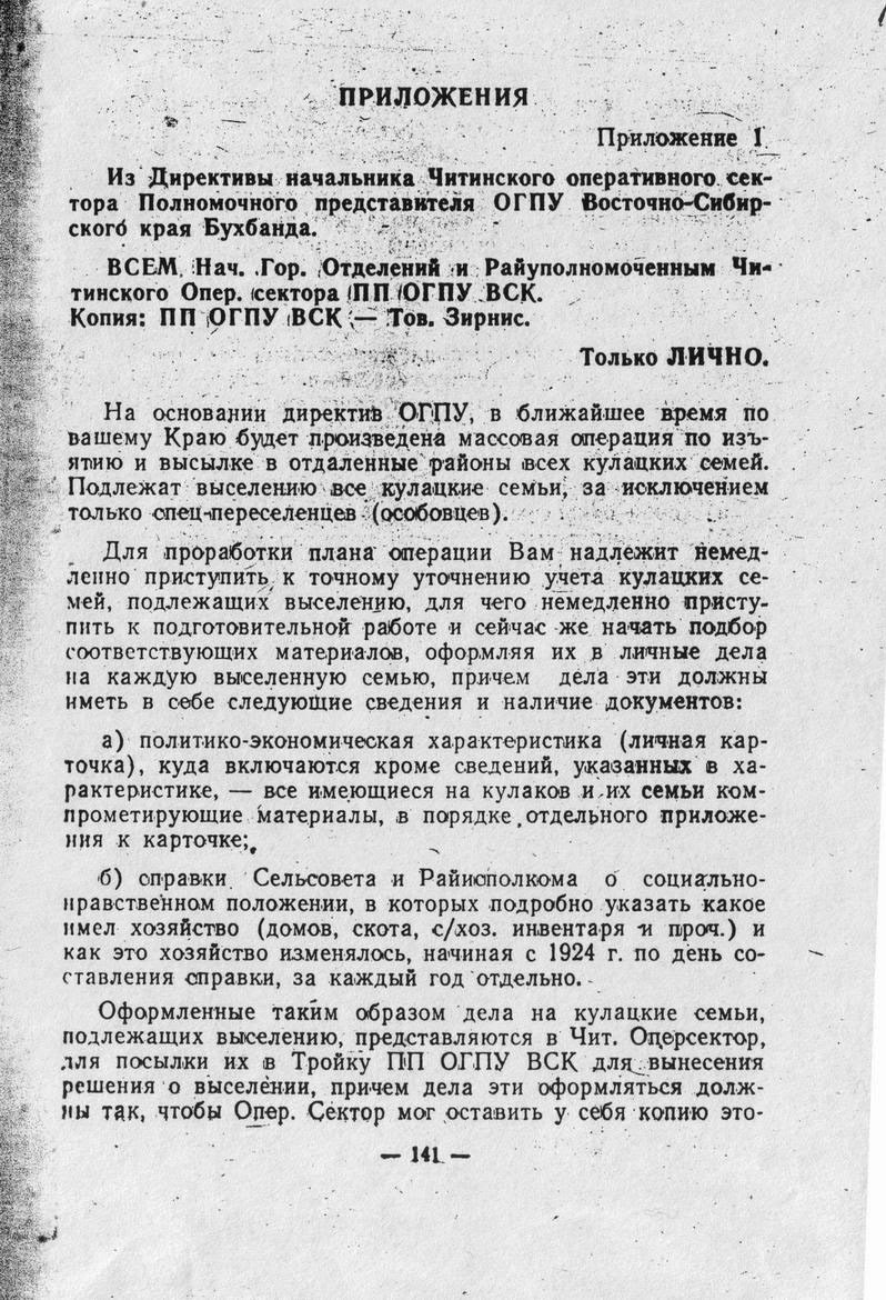 Оловянинского района Читинской области . Выселена тройкой ОГПТУ на спецпоселение