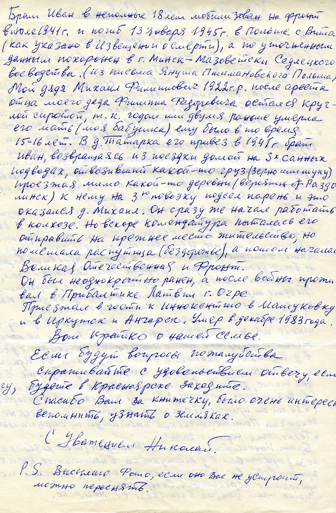 Из письма Николая Алексеевича: