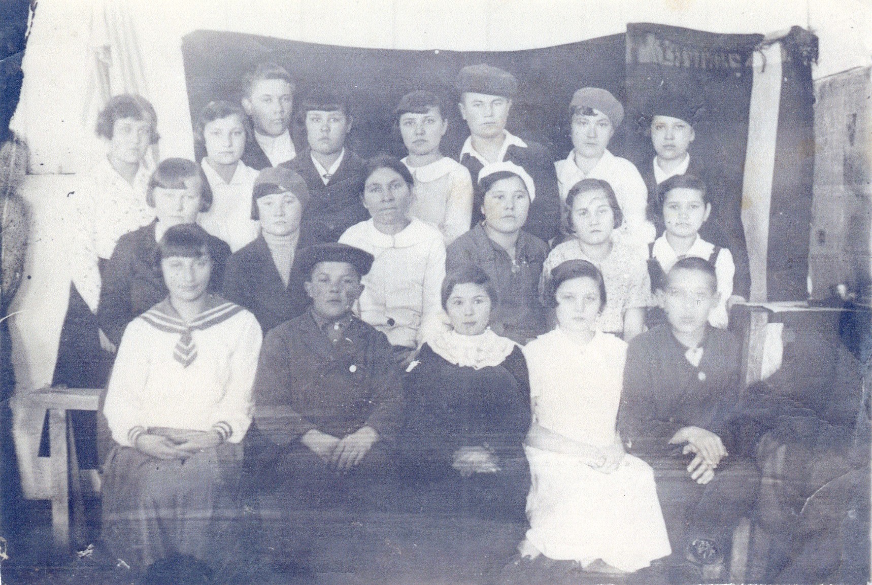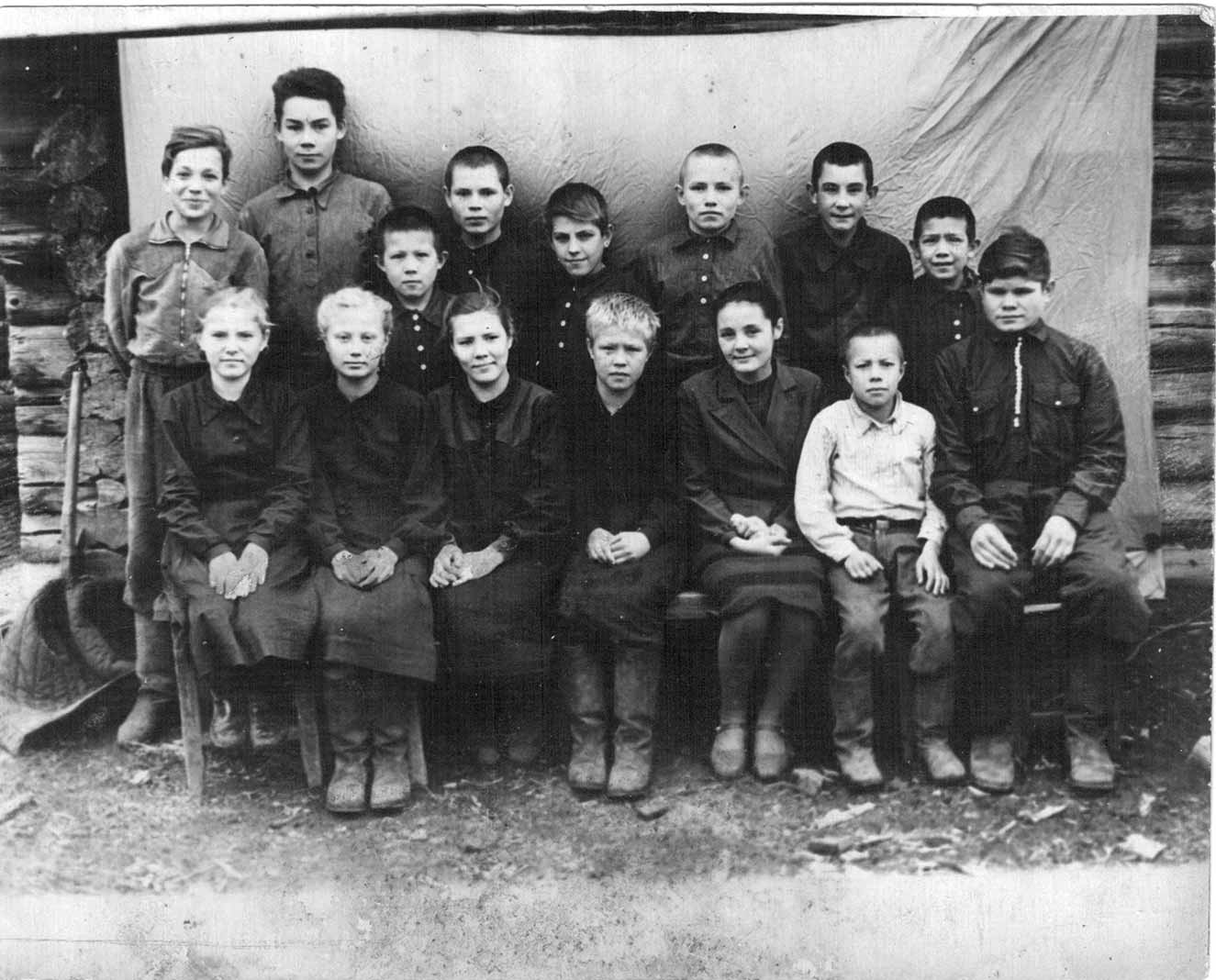Ученики начальной школы деревни Татарка. Впереди Лиханов Саша, Пакулова Валя,