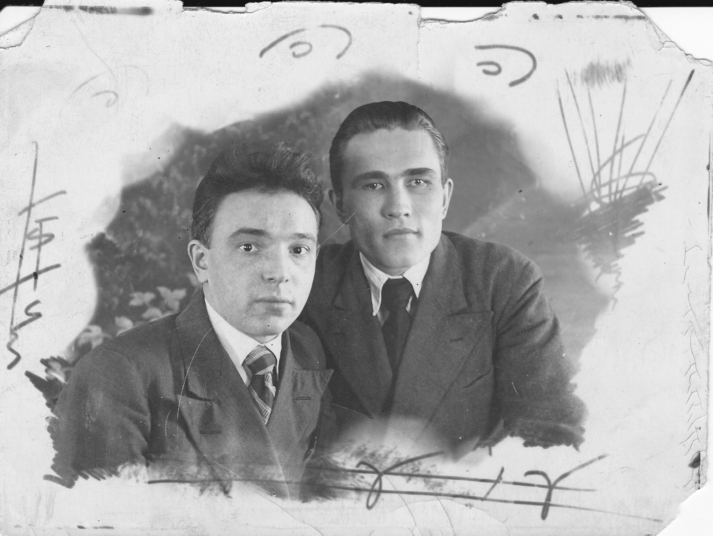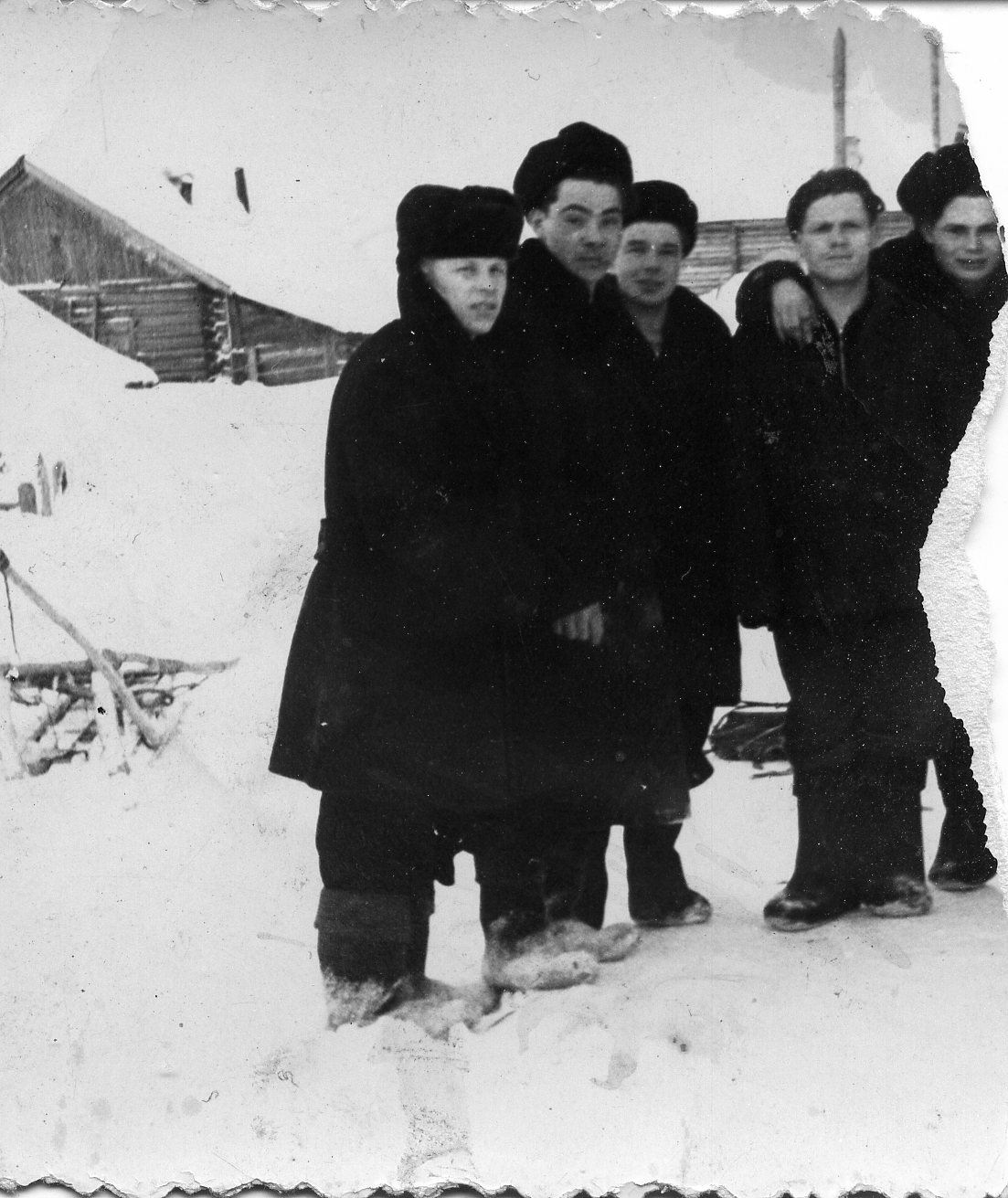 Бронников Михаил Алексеевич (слева) погиб в ВОВ, его друзья. Станция Шира 1941г.