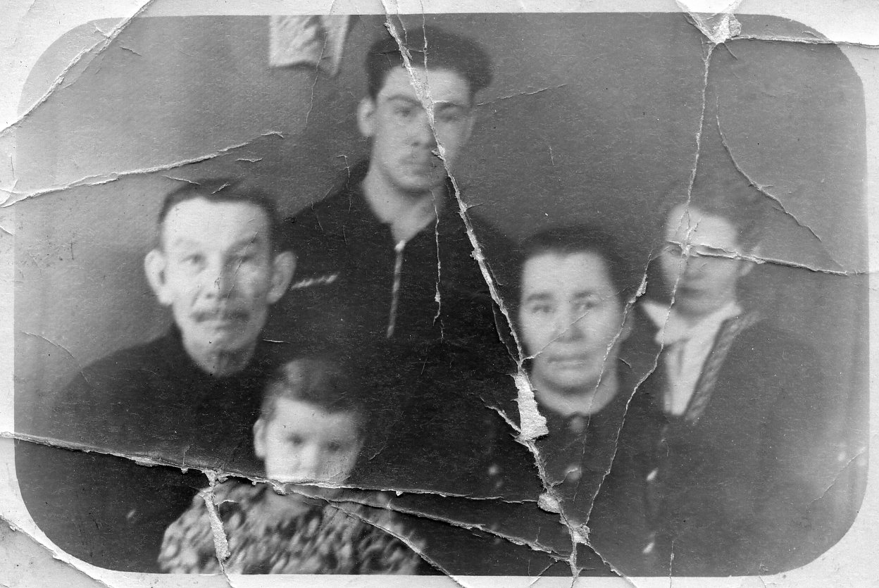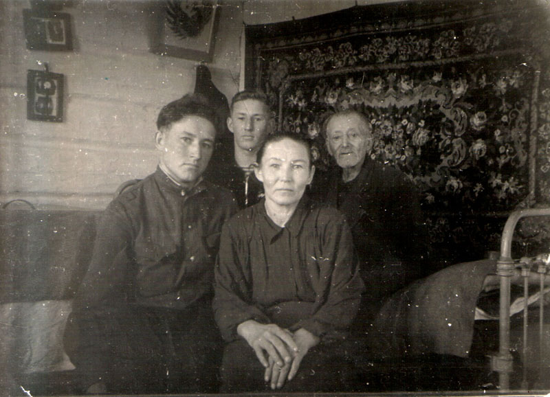 Семья Барановых. Алексей, Валентин, Александра Селиверстовна и дед Хрисанф