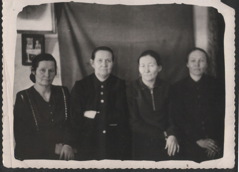 Сидят: Пакулова Евдокия Григорьевна, Никитина Анна Илларионовна, Певович Наталья