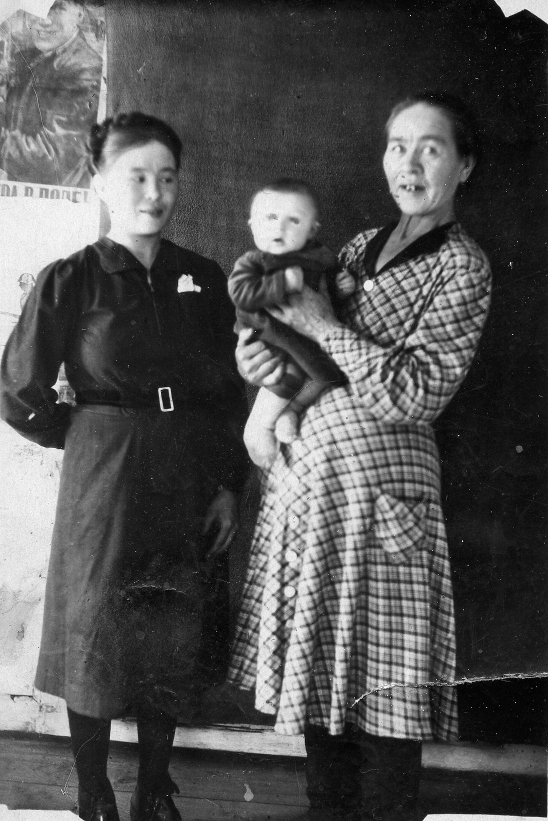 Шадрина Евдокия Николаевна, ее дочери Тамара (слева) и Антонина с дочкой