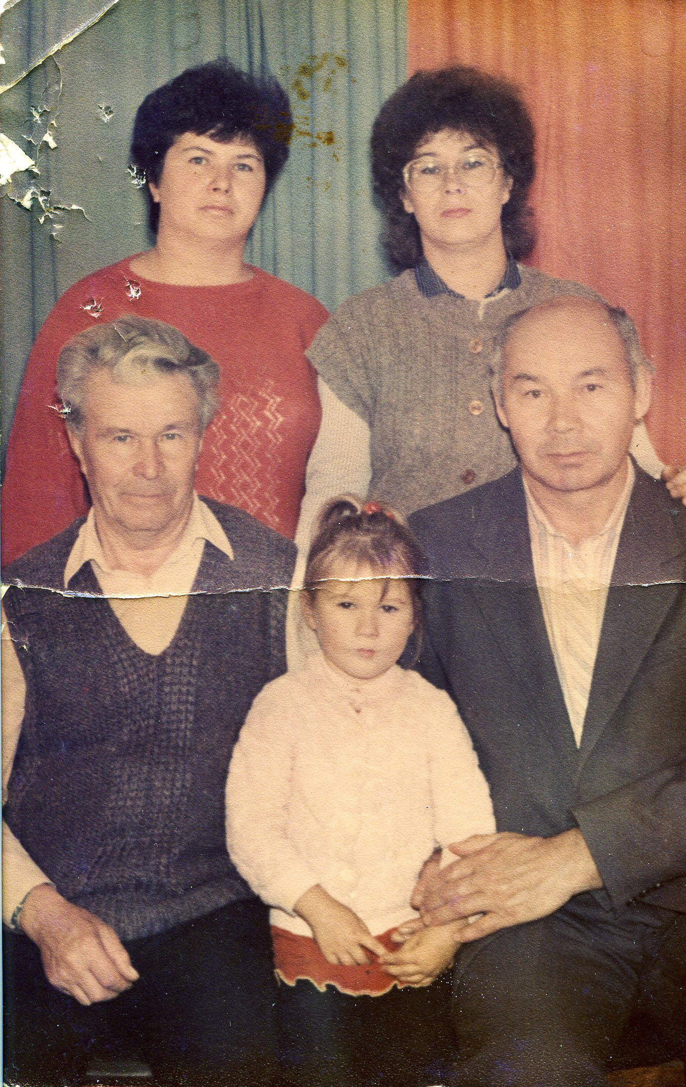 в середине сестры Матвеевы, стоит Альбина, сидит Лида, их отец в середине 50-х