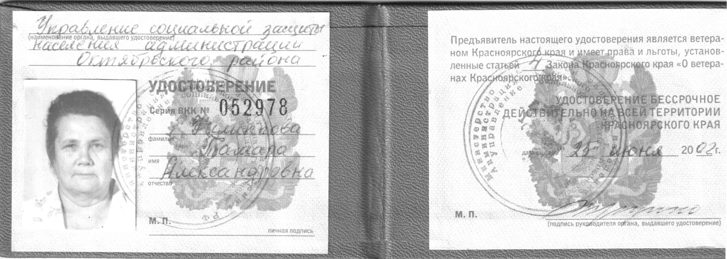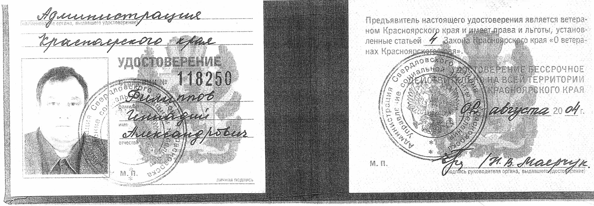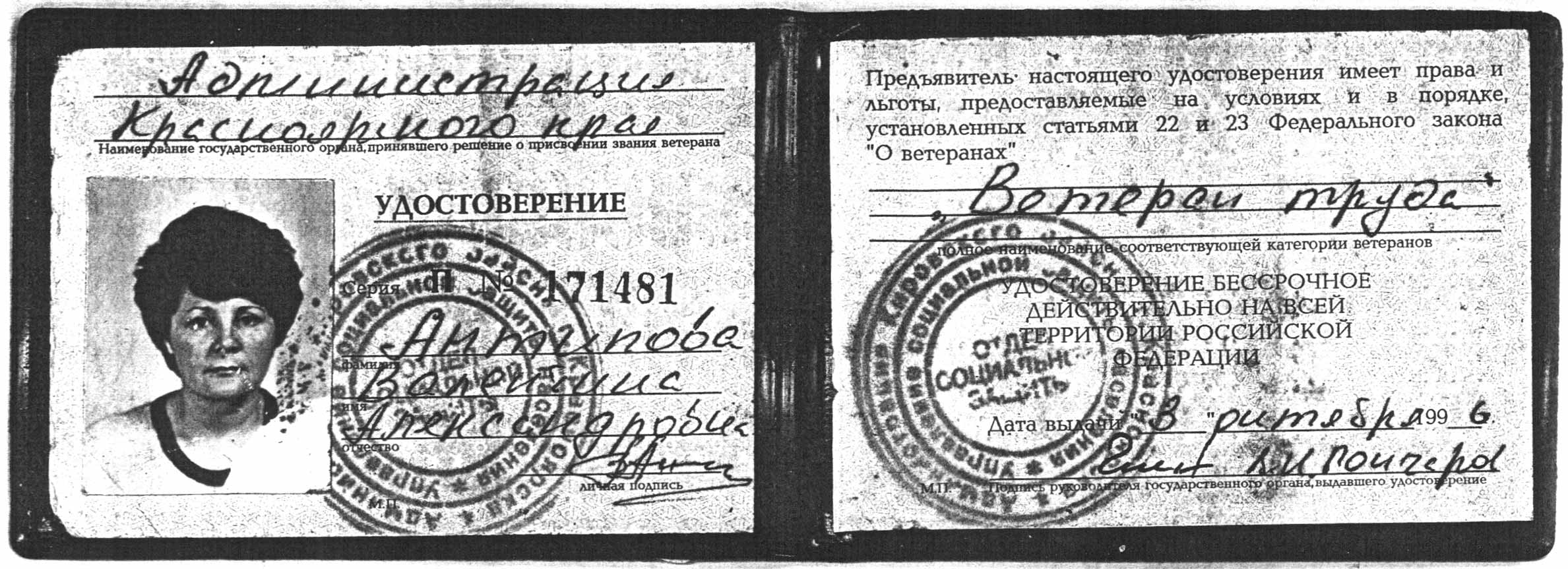 Свидетельство Ветеран Труда Филипповой Валентины Александровны