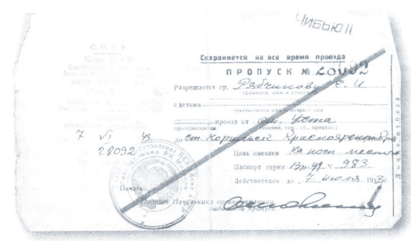 В июле Е.И.Рябчиков был отправлен в командировку в Москву для приобретения учебной литературы, учебного и технического оборудования. К своему заданию он отнесся очень ответственно. В письме, отправленном на имя Панюкова 3 сентября 1944 года, Рябчиков пишет: «Уважаемый Александр Алексеевич! Все Ваши задания по вопроса организационного оформления техникума и получения учебников я выполнил. Сегодня с большим трудом вывезли все учебники, остатки книг и учебные карты, все запаковано и отправляется самолетом (летчик Веребрюсов) Молодежь техникума будет обеспечена учебниками по общеобразовательным предметам. Три дня назад отгрузили техническую литературу на сто тысяч рублей, а также карты (географические)».(Веребрюсов Степан Александрович (1912-1945) - летчик, з/к Норильлага. С 1941 г. - в авиаотряде Норильского комбината. Перевозил на самолёте первую тонну норильского металла в условиях прекратившейся воздушной навигации, тяжеловесные детали для строившихся БМЗ ТЭЦ. За самоотверженную работу в полярной авиации награждён орденом "Красной звезды" и орденом "Знак почёта". Погиб в Германии, где находился в служебной командировке о Норильского комбината.)