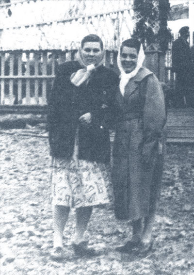 О.Г.Яремчук (справа) с соседкой, п. Медвежий ручей. 1957 год
