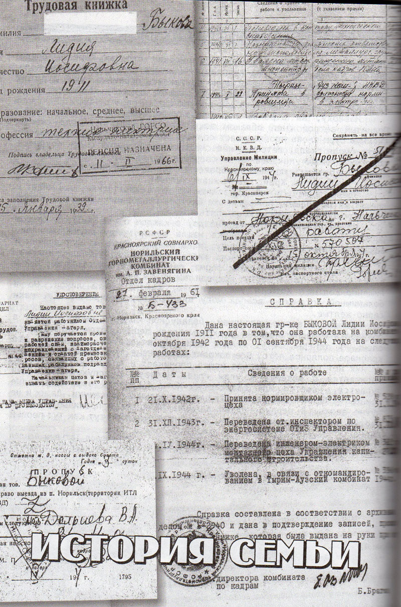 Его мама, Лидия Иосифовна Быкова, была эвакуирована с Тырныаузского комбината и в 1942 - 1944 годах работала по вольному найму в отделе труда и заработной платы на Норильском комбинате. Предметы, которые были сделаны руками заключённых, всё это время хранились в семье Быковых.