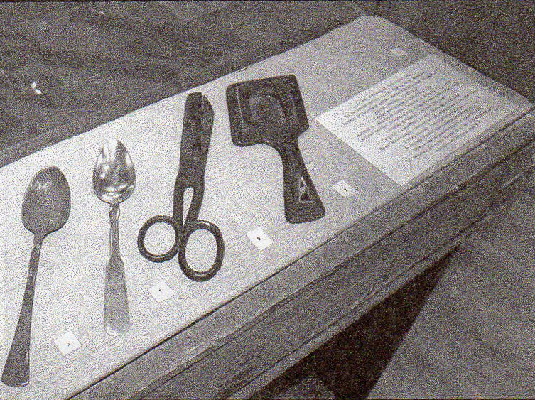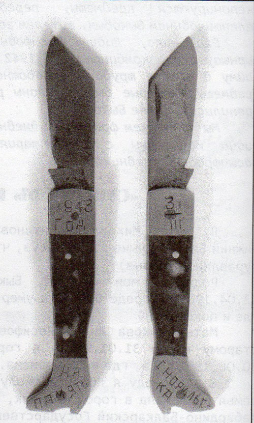 Вести записи вообще приходилось крайне скупо, по этой причине я больше полагалась на свою (тогда еще очень хорошую) память и на те сувениры, которые мне часто дарили зэки. Миниатюрный складной ножик (аналогичный описанному в книге А.И.Солженицына «Один день Ивана Денисовича»). Великолепная ручная работа и безграмотная дарственная надпись: «31/III 1943 год. С Норильска на память», говорят о том, что изготовитель прекрасно владел приёмами художественной работы и не владел грамматикой русского языка. Скорее всего, изготовитель или вор-домушник, или медвежатник со стажем, но не тот, кто сел по статье 58 УК. Мундштук, зажигалки, гребенку для волос, зеркало, замочек делали менее квалифицированные мастера-зэки, скорее всего, не имевшие большого опыта ручного труда, но имевшие длительные сроки, возможно по статье 58 УК.