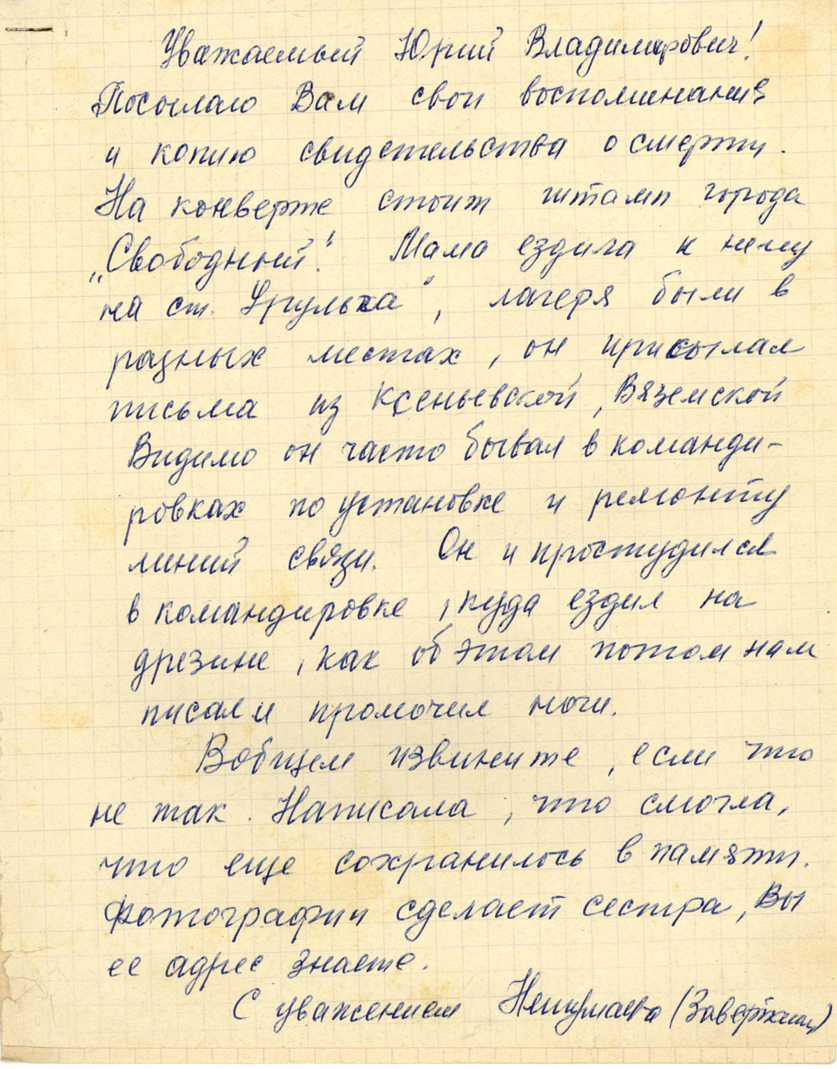 Посылаю Вам свои воспоминания и копию свидетельства о смерти.