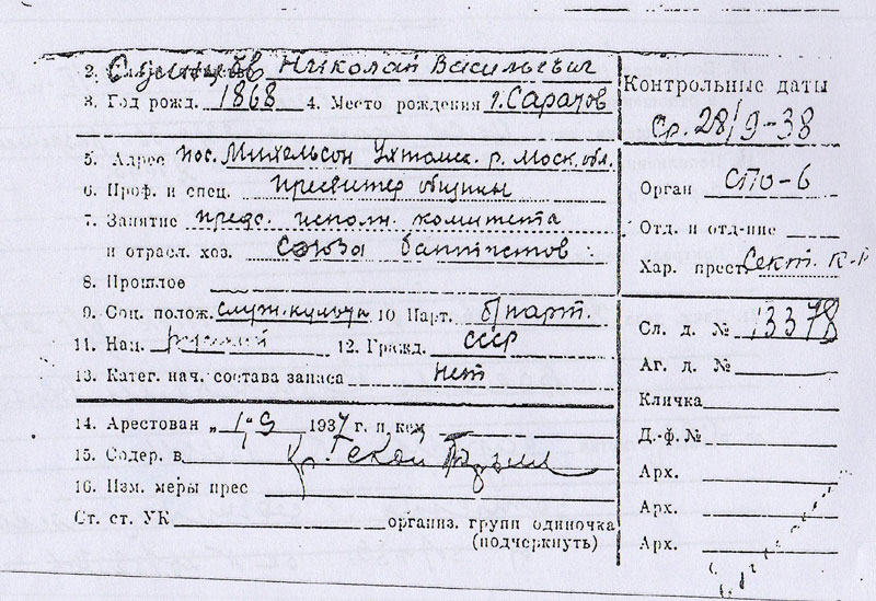 В 1938 году Николая Васильевича снова арестовали и увезли в неизвестном