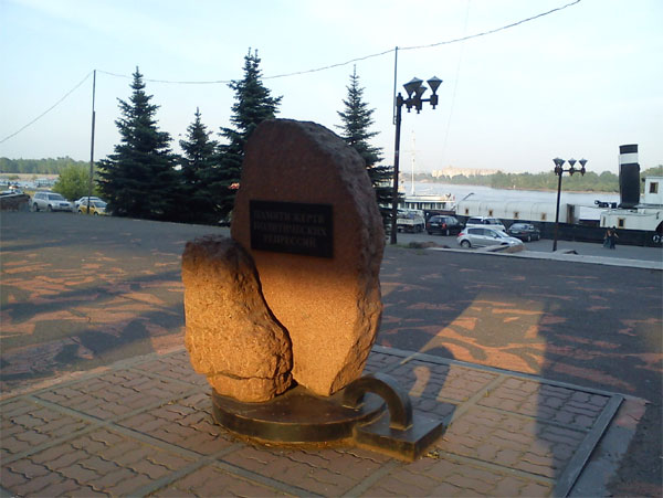 Памятник жертвам репрессий в Красноярске. На горизонте виден ЦБК.
