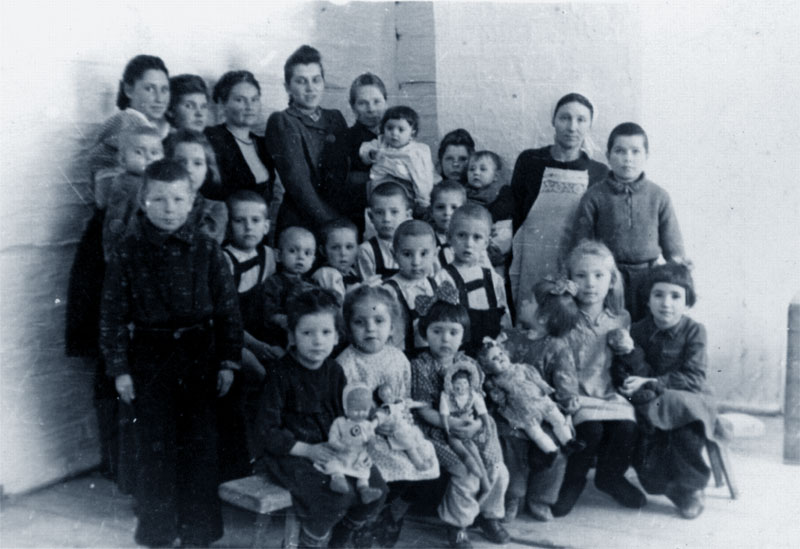 А с дедушкой были постоянные хлопоты. Он выходил на двор и говорил -Иду к Доротке, иду в Вильно. Я не знаю почему его и бабушку депортировали. Быть может потому, что во время депортации они были у нас. Тётя была больна, на работу в лесу не годилась, она едва ходила. Все дела были на голове мамы и тёти. Мама работала лесорубом. Это была для неё чрезвычайно мучительная работа. С работы возвращалась измученная и голодная. Какой был её заработок ? Не знаю. Тётя работала в детяслях, сперва как опекун, а потом была кухаркой. После работы делала на спицах салфетки, кружева и всё это меняла на еду. Эту работу выполняла обыкновенно вечером при свете лучины, а потом коптилки. Я ходила в детский сад, там меня кормили, помню щи вареные на рыбьих головах. Кроме пищи давали нам рыбий жир. Лили его на комок хлеба, солили и это мы съедали. Кроме того мы ели суп с крапивы, лебеды, черемшу. Иногда, однако очень редко, можно было купить в лавочке растительное масло.