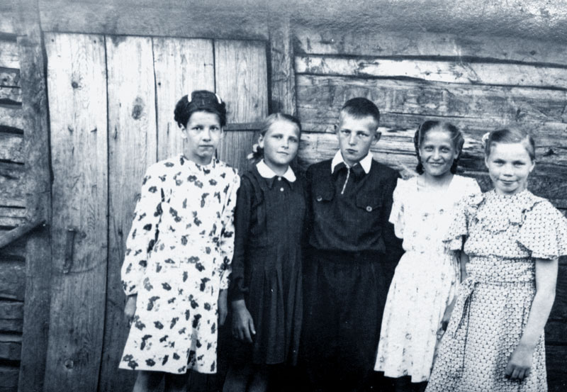 В детяслях и в школе были у нас дружбы. Я помню мои сердечные подруги, украинку Марусю, литвинку Анну и гречинку Элени Мастуфиги. Мы пели песни русские и других национальностей, танцевали и играли. Мне очень нравилось когда девушки шли улицей и пели прекрасные песни. Между собой вовсе не разговаривали о причинах депортации наших родителей. Никогда на эту тему не было разговоров. Дома я говорила только по польски. Я уже привыкла к русскому языку, а когда пани Ковалевска однажды в нашей квартире сказала- Шляг бы тебя трафил (чтоб ты подох!), эти довольно грубые слова казались мне цветными и прекрасными. Я их до сих пор помню.