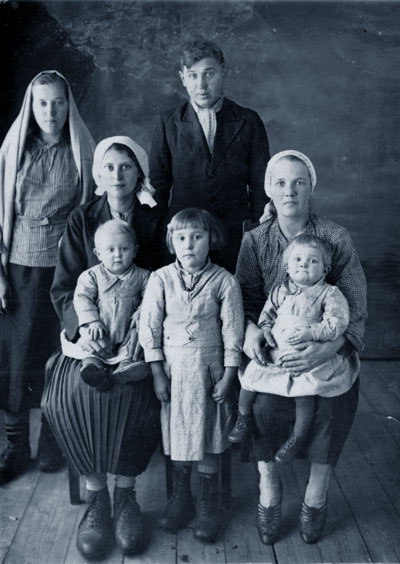 в платке с решетчатым [?] узором Мария Коляса (мама), справа в светлом платке с