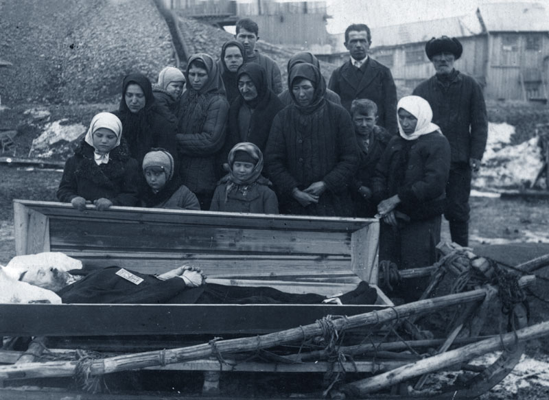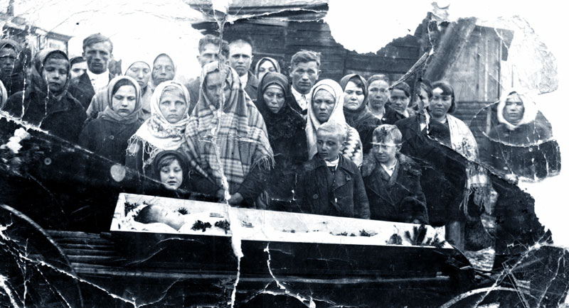 Фот. 6 Похороны Яна Колясы, 1942 г. В тёмном платке, у самого гроба Станислава