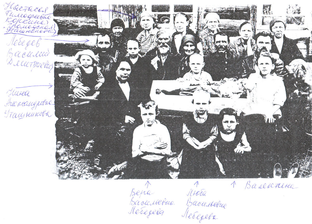 Вера Васильевна Лебедева — моя мама, даже в первом браке она сохранила девичью фамилию. Других родственников не знаю. Мама о них не рассказывала, и я их не видела, но в её рассказах упоминалось, что зимою в морозы делалось огромное количество пельменей, значит было хозяйство, и осенью с первыми заморозками всё это шло под нож на питание. А с пельменями и в гости ездили к родне на праздники, и в лес за дровами брали с собой еду.