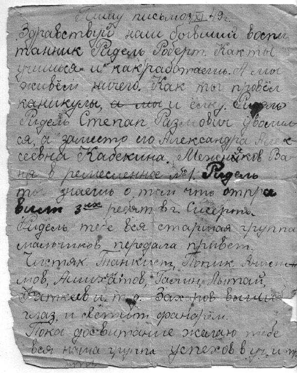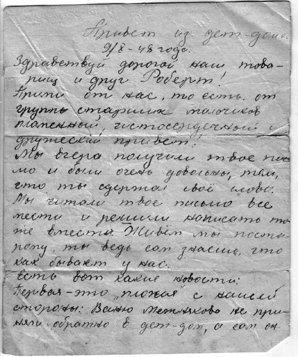«Привет из детдома. 9/Х -48 года.