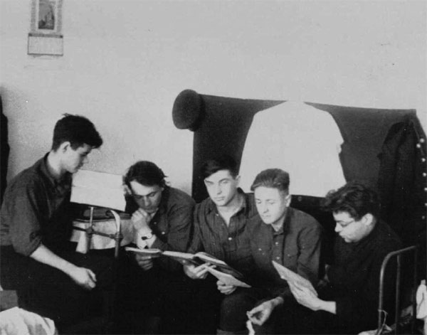 Завтра экзамен (1952 год). Я в центре, Наум - крайний справа.