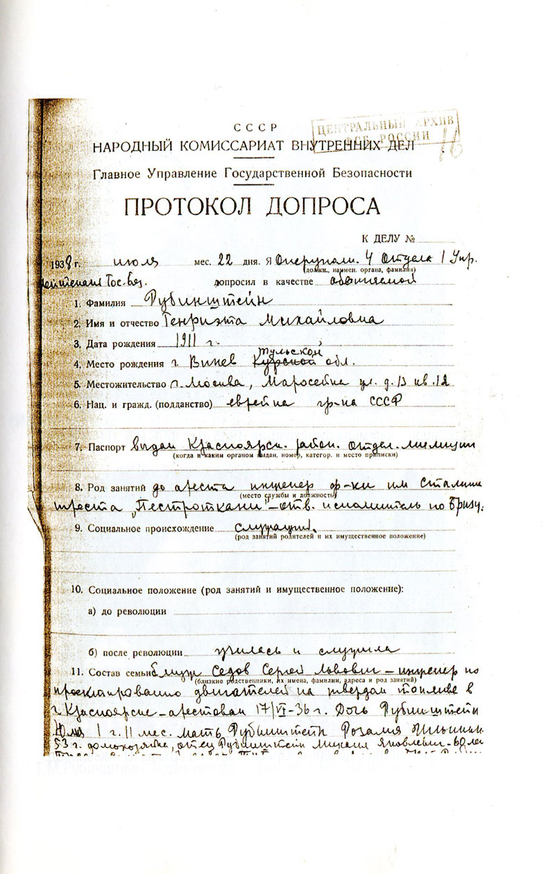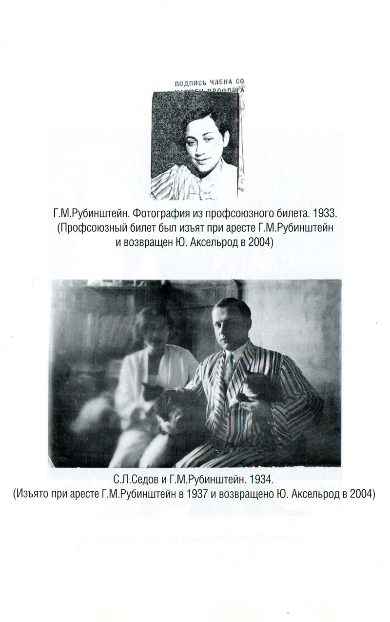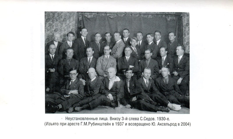 По просьбе Ю.Аксельрод сотрудник Научно-информационного и просветительского Центра «Мемориал» (Москва) Сергей Ларьков ознакомился в архиве Федеральной Службы Безопасности Российской Федерации с архивно-следственными делами С.Л.Седова 1935 и 1937 годов, Г.М.Рубинштейн (она была приговорена к 8 годам заключения и 10 лет провела в Колымских лагерях и еще почти столько же - в ссылке на Колыме), а также с делами ее родителей, за причастность к Троцкому в старости отправленных в ссылку в Сибирь.