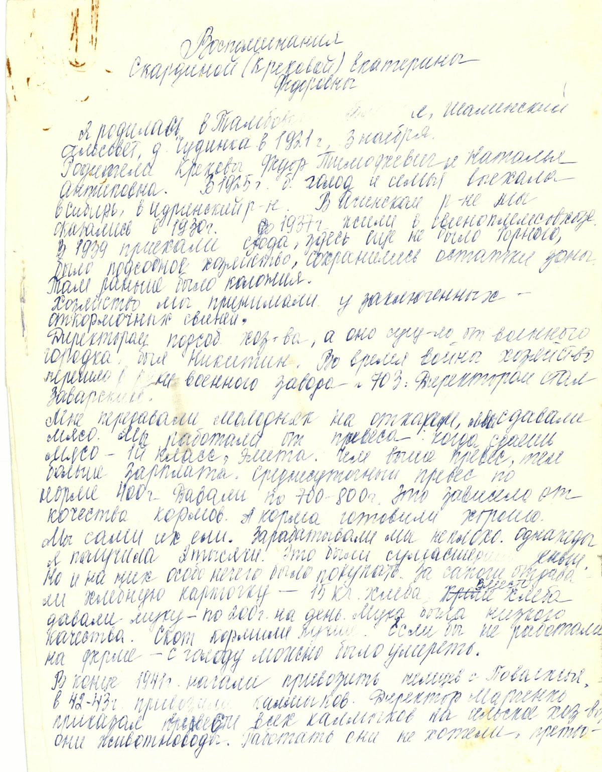 Воспоминания Скардиной (Крековой) Екатерины Федоровны