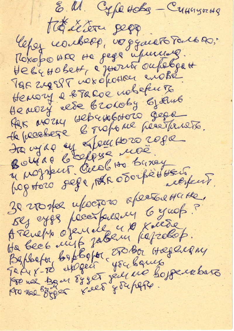 Стихотворение написано под впечатлением от полученной посмертной реабилитации