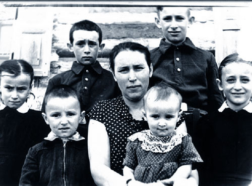 Шмаль Мария с детьми. Слева в первом ряду: Роза, Володя, Мария, Анна.