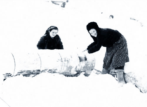 На заготовке дров в посёлке Потапово. Справа - Лидия Кох. 1957 г.