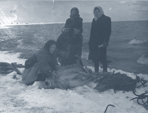 Разделывание белухи на рыболовецкой точке Варкузино. 1949-1951 гг.