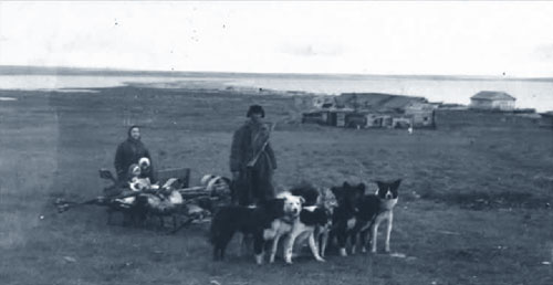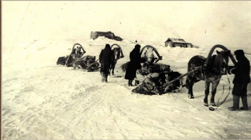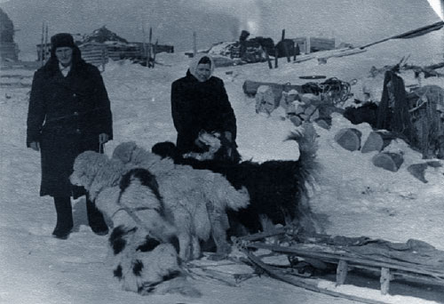 Перевозка грузов на собачьих упряжках. Слева направо - Мария Бейс, Иван Краулис.