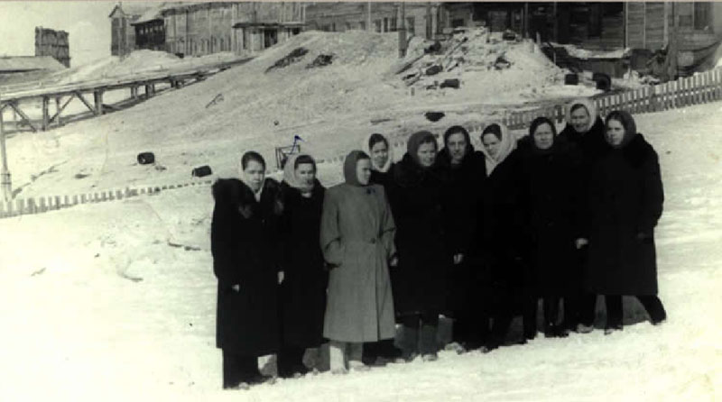 Поволжские немцы в низовьях Енисея. Сидоровск, 1950-е. Слева направо -Амалия