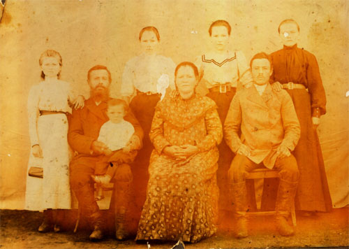 Рядом с Иваном Платоновичем сидит его жена Марина Степановна. Стоят их дочери Татьяна и Евдокия. Справа от матери - сын Василий (участник русско-японской войны 1904-1905 гг.). За спиной Василия стоит его жена – Анна Павловна, родная сестра Жигалина Якова Павловича, выборного командира 2-го Читинского полка.