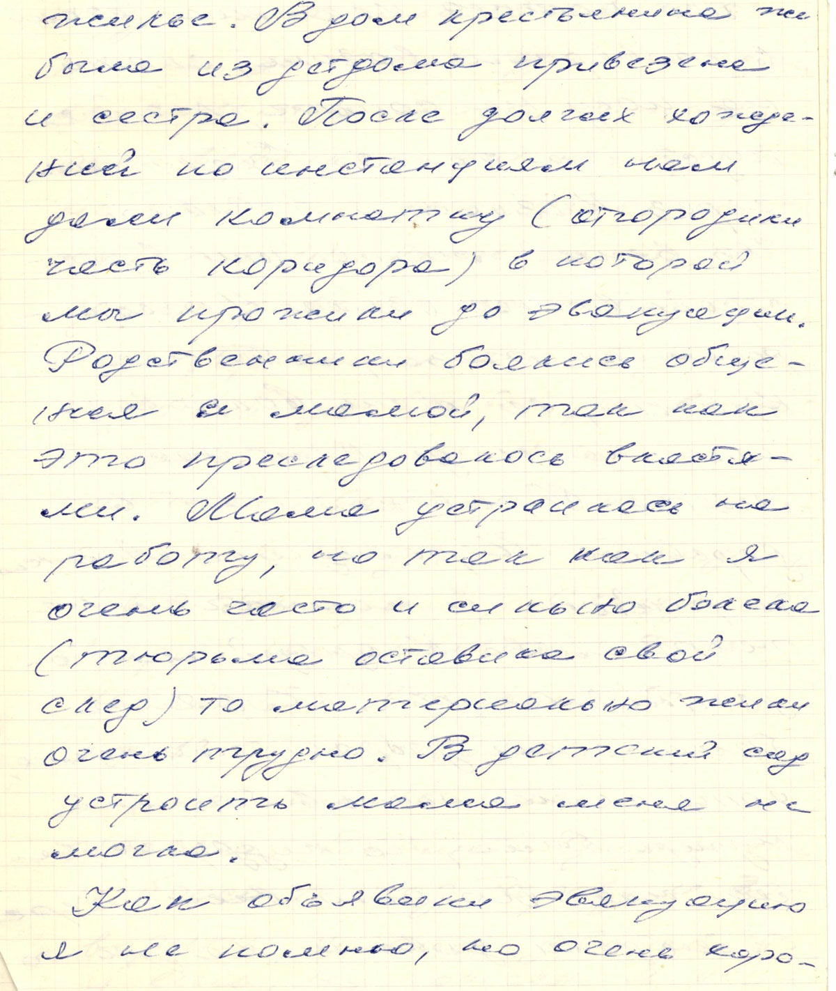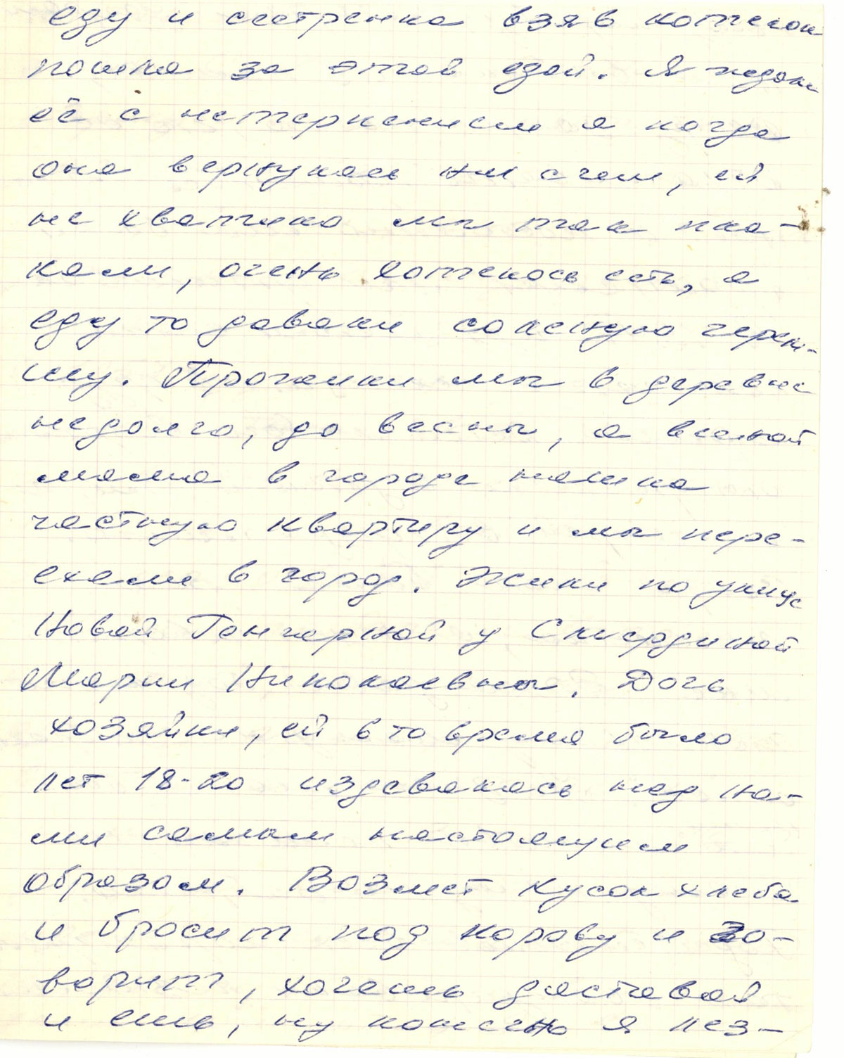 В 1943 умерла Ирма. Маму стали преследовать кошмары. Мы съехали с квартиры Смердиных и мыкались так до 1944 года. Мама пошла работать в артель “Спартак”, потом - в Горкоммунхоз. Там нам дали отдельную комнату - 9м2, темную, грязную и запущенную. Мы хлебнули с ней лиха.