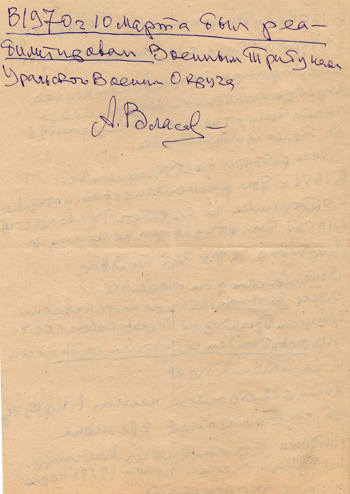 Власов Андрей Алексеевич. Письмо