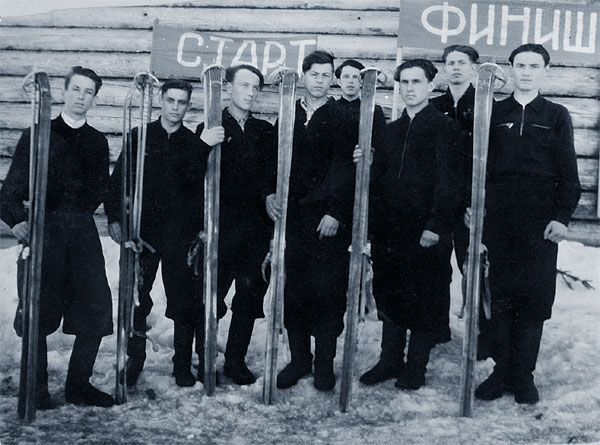 Городнянский и другие ребята, на заднем плане учитель Н. Ф. Галеев