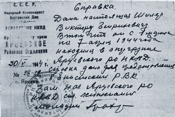 Но время шло, и как-то меня заведующая общим отделом шепотом информирует «Вас приглашает начальник райНКВД - капитан Сычев» (имя-отчество я забыл). Я упал духом и думал: «За что? Почему?». И попросил передать маме, что, если я не вернусь, то не пропаду. Я к этому времени и управлял лошадьми, при чем, жеребцами, с которыми не могли сладить другие парни и мужчины, и валил лес, был спортивным, Здоровым... Нахождение в местах не столь отдаленных потому мне было не страшно. И я с таким настроением иду на прием, говорю дневальному: «По приглашению капитана Сычева». Тот подскакивает с места и берет под козырек. Я поражен... Вошел в кабинет, сел на табурет, и начинаются вопросы: «Как живете, на что жалуетесь?». И вдруг вопрос: «Как владеете оружием?». Я удивлен и отвечаю, что подготовил пять очередей всеобуча и все вооружение, которым владеет Красная Армия, и разбираю, и собираю вслепую. «Вы должны нам помочь». Я соскакиваю и говорю: «Служу Советскому Союзу!». Капитан посадил меня и говорит: «Никому ни слова. Тринадцатого января 1943 года в 18 часов вы должны к нам явиться. А сейчас что запланировали - выполняйте».