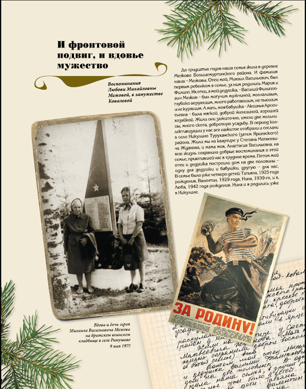 Один фронтовик написал тогда в Никулино своей жене: «Передай Настасье Межовой, что Михаил ее погиб геройски. О нем по фронтовому радио три дня говорили».