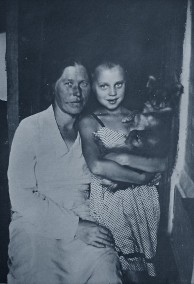 Письменный прибор делать нечем, да я и не гонюсь сейчас за такой работой, т.к. хватает вечной писанины. Напиши, в какой ты школе и где она расположена, наверное, на площади, тогда близко ходить будет. Как огород и сад, вернее 2½ деревца около дома. Что-то Вы, друзья, ничего не пишете о знакомых и о новостях города, Столбах, Алька! Ты разучилась писать. Мне кажется, ты лучше писала, а может быть, это мне кажется. На Столбах лестницы. Ха-ха. (Прим. ред. сайта: в 1939 г. на 2-м Столбе была построена лестница для участников всесоюзного съезда ). Хорошо, что мне на них не лазать и что в свое время я обходился без лестниц. Ну, всему свое время. Поклонись дяде Мите, я как сейчас вижу его картину «Костер над камнем», это было в конце золотого века при переходе к избушечному периоду. Мама его тоже застала еще. Интересно, что нового из построек на берегу или Красноярск по-старому к красавцу Енисею выходит запачканным неблагородным задом.