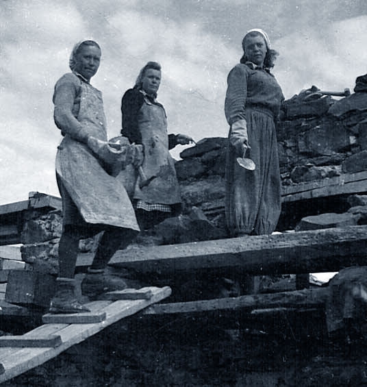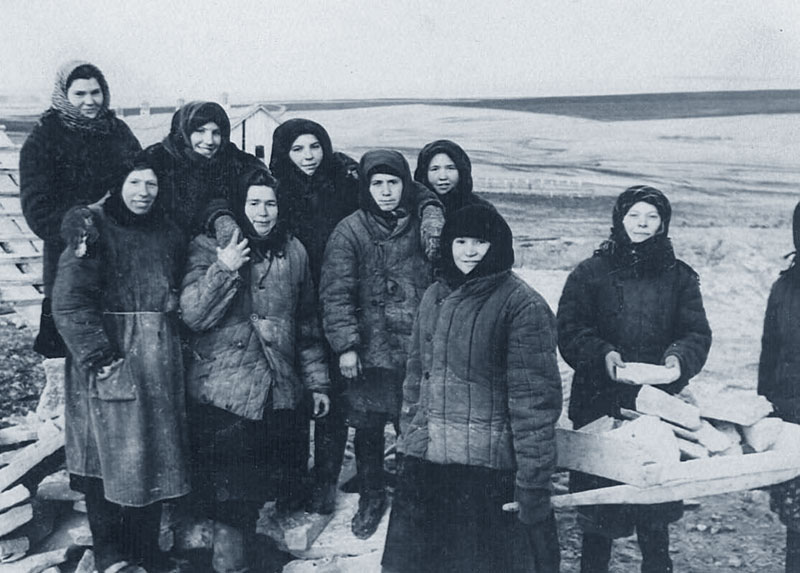 сейчас работаем на лесопилке, нас семеро в бригаде: четыре женщины и трое