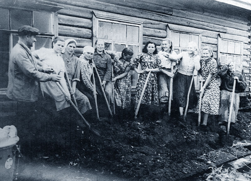 Почва была настолько плодородная, что навоз не использовали, его весной выбрасывали в овраги или сжигали засохшие батареи навоза прямо на месте. Весной во дворах строились временные печи, которые топили кизяком. Еду варили в чугунках. На второй год нашей жизни в Сибири всем выделили участки для посадки картофеля. Они находились далеко от села, когда мы приехали, поле было уже вспахано. Картошку сажали лопатами, в Сибири это парная работа: первый выкапывал ямку, второй кидал в неё картофелину, первый засыпал клубень землей от следующей ямки. Летом за участком следили в основном школьники, пропалывая и окучивая картофель тяпками.