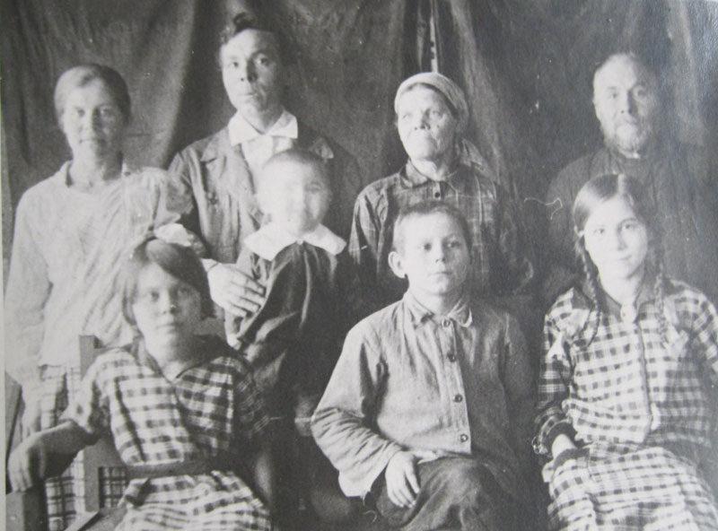 второй ряд: Прасковья Тимофеевна, Даниил Григорьевич, его мать, отец Григория