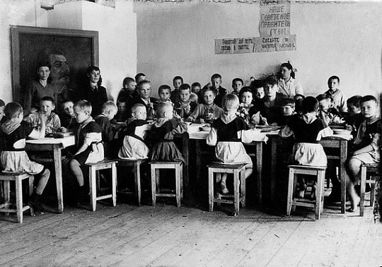 Есть хотелось всегда, и я стала ходить по людям. В Дудовке было много ребятишек разных национальностей: и татары, и казахи. Когда со мной разговаривали, я только улыбалась, потому что не понимала, что они говорили. Дети говорили, чтоб я садилась, пока их родителей не было. Когда родители приходили, дети рассказывали, что я хожу, собираю куски, п.ч. у меня нет ни мамы, ни папы. Со временем я стала понимать по-русски, по-чувашски, а потом и по-татарски». В детском доме М.С. прожила около 4 лет, потом все- таки брат Давид забрал ее и увез в Александровку. Директор детдома отговаривал его, говорил, что если я останусь в детском доме, мне легче будет потом будет куда-то поступить. Но Давид стоял на своем, и так мы оказались в Александровке. Мы жили в доме вместе с другими переселенцами. Каждый день нам полагалось по 500 граммов овсяной муки- это был наш паёк. К тому времени я пошла на работу в колхоз, возила на быке воду. Бык такой непослушный был, вредный, а я маленькая, никак не могла с ним управиться». Тут хоть плачь, хоть скачь». Давид пошел к бригадиру и рассказал о моих бедах, и вскоре меня перевели на ферму, я ходила за отъемышами поросятами, чистила, убирала, кормила. Было трудно.