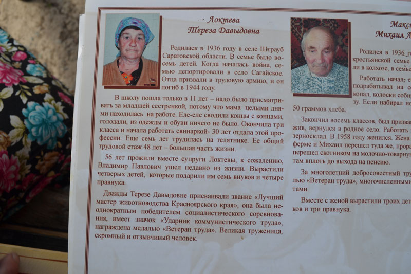 Экспедиция Красноярского государственного педагогического университета им. В П. Астафьева и Красноярского общества "Мемориал" по проекту «Антропологический поворот в социально-гуманитарных науках: методика полевых исследований и практика реализации устных нарративов» (грант Фонда Михаила Прохорова). 2016 г. Каратузский район.
