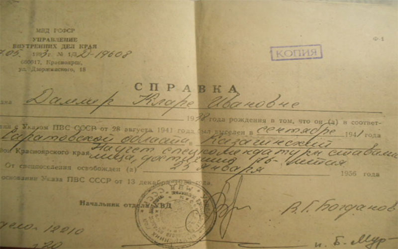 В сентябре 1941 года всю семью депортировали. На момент депортации Кларе Ивановне было три года, к сожалению она мало что помнит.